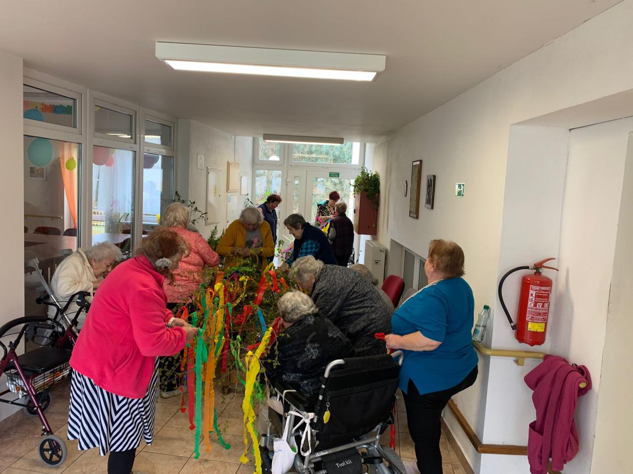 Senioři si sami máj nazdobili a s naší pomocí postavili před vchodem do Dps. Opekli jsme si špekáčky, bylo připraveno výborné pohoštění. Zpívaly se písničky, tančilo se, dobrá nálada nás neopustila a den jsme si náramně užívali.