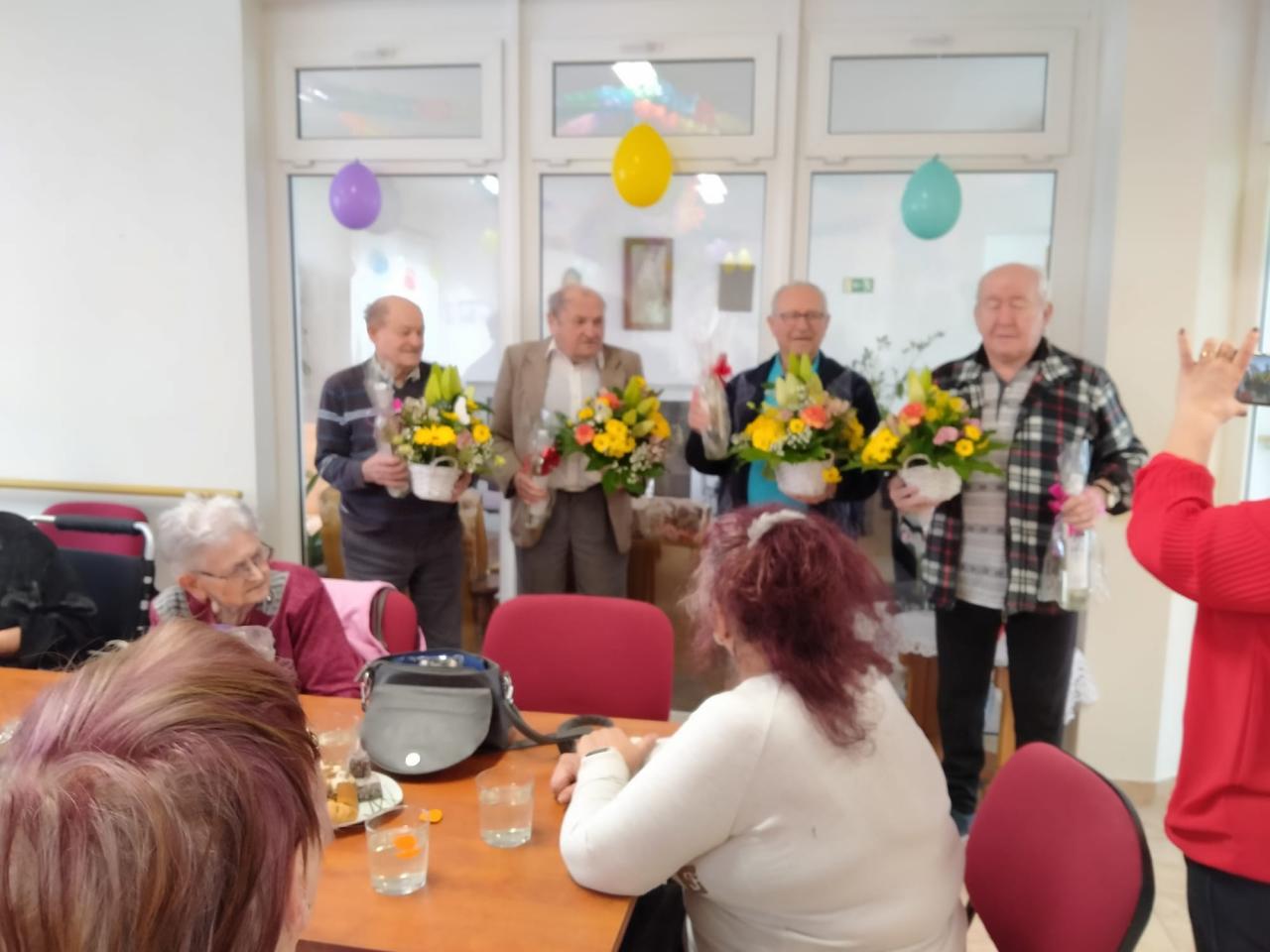 V březnu se konala oslava MDŽ. Během přivítání ve společenské místnosti jsme byly velice mile překvapeny krásnou květinovou vazbou, kterou obdržely pečovatelky od všech obyvatel DPS. Poseděli jsme při kávě, občerstvení a s hudbou. Následovala kulturní vložka, která zvedla náladu všech přítomných. Každá žena obdržela malé květinové překvapení s přípitkem a připili jsme si na zdraví. Akce měla velký úspěch. Obyvatelé se těší na další společné setkání.